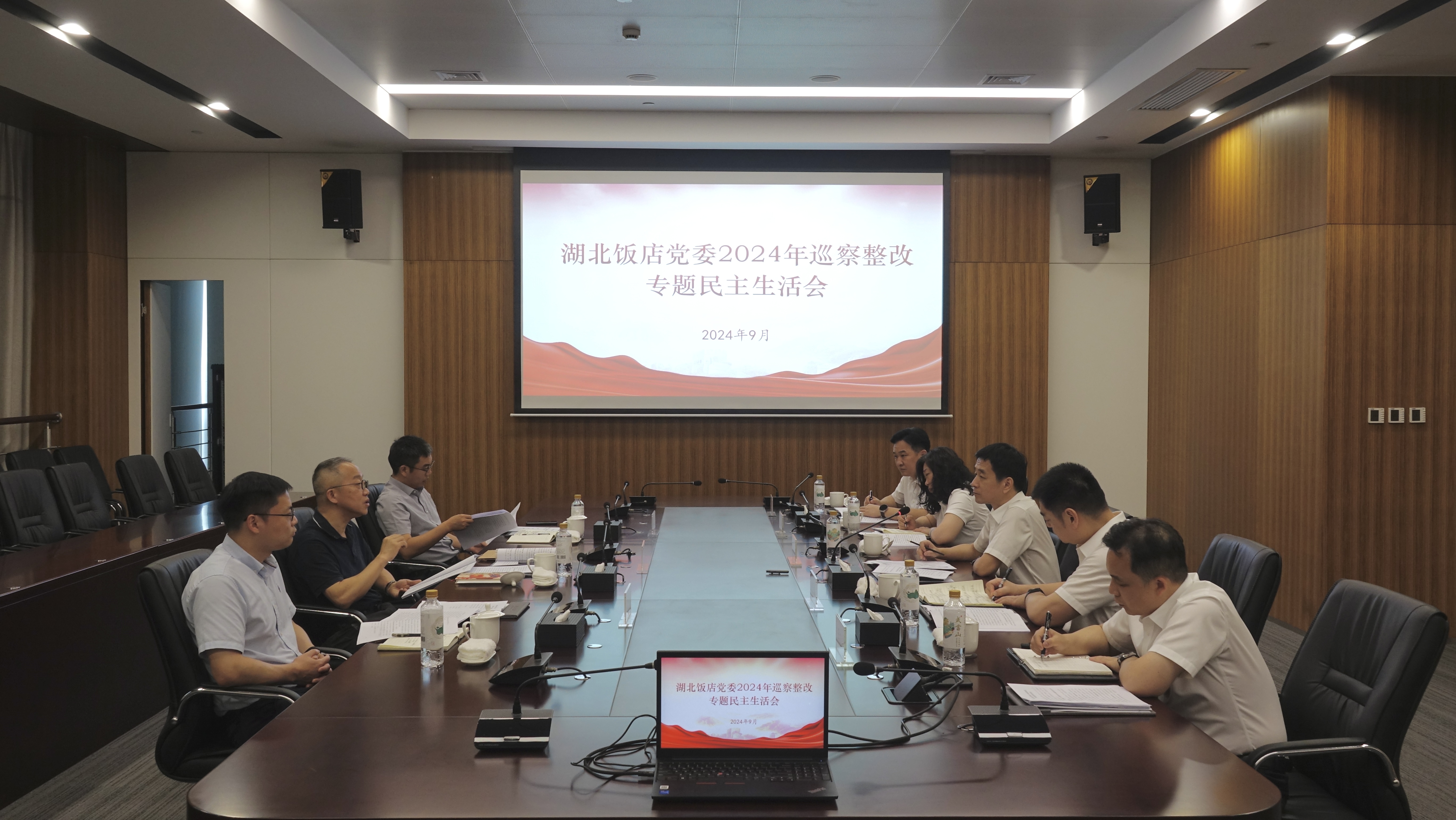 9月3日,按照集團(tuán)黨委工作部署,湖北飯店黨委召開2024年巡察整改專題民主生活會(huì)。重點(diǎn)聚焦集團(tuán)黨委巡察反饋的問題,全面對(duì)照檢查,深入進(jìn)行檢視剖析,嚴(yán)肅開展批評(píng)與自我批評(píng)。會(huì)議由飯店黨委書記、董事長(zhǎng)譚冰主持,集團(tuán)黨委巡察組組長(zhǎng)羅德才,集團(tuán)黨委組織部(人力資源部)副部長(zhǎng)魯玉聰,駐湖北文旅集團(tuán)紀(jì)檢監(jiān)察組、集團(tuán)紀(jì)委綜合室主任王杰到會(huì)督導(dǎo)。